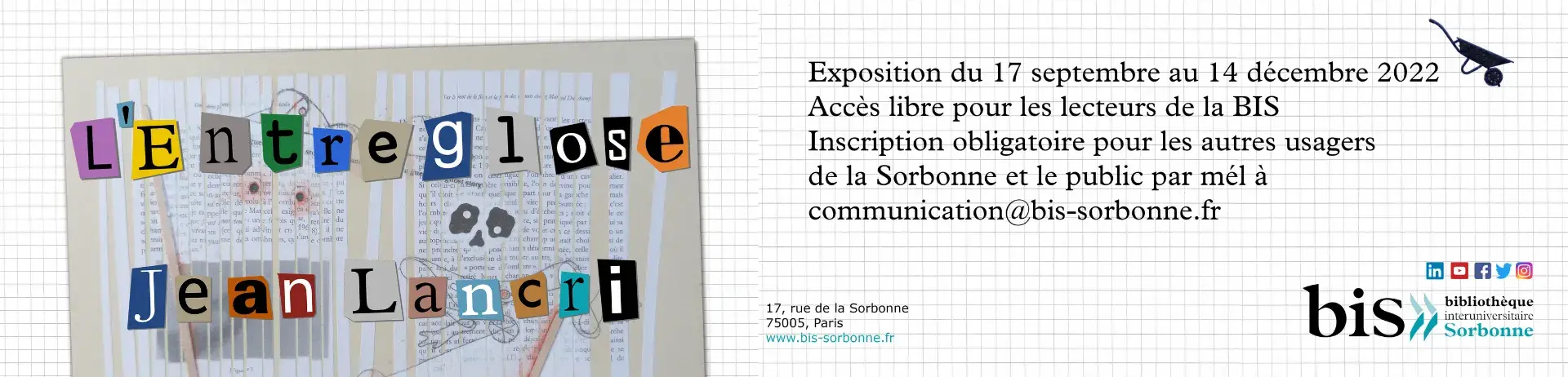 À partir de 19 h : vernissage ouvert à tous sur inscription auprès de communication@bis-sorbonne.fr